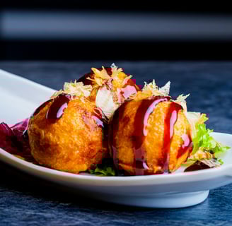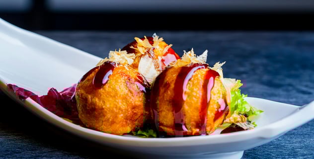 This popular street food consists of savory octopus-filled balls made from a wheat batter and cooked in a specially shaped mold. Takoyaki is typically topped with takoyaki sauce, bonito flakes, and green onions. It's a convenient and delicious snack that captures the essence of Osaka's bustling food scene.